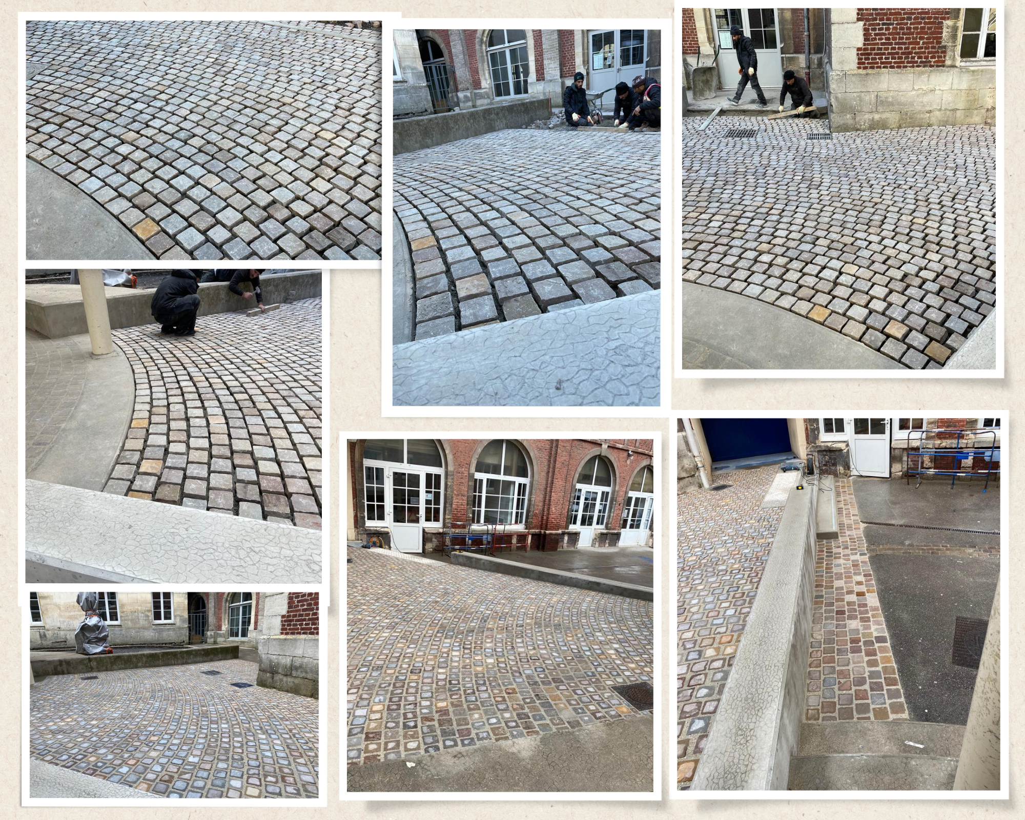 Pose de pavés 10*10 sur mortier en pose arrondie